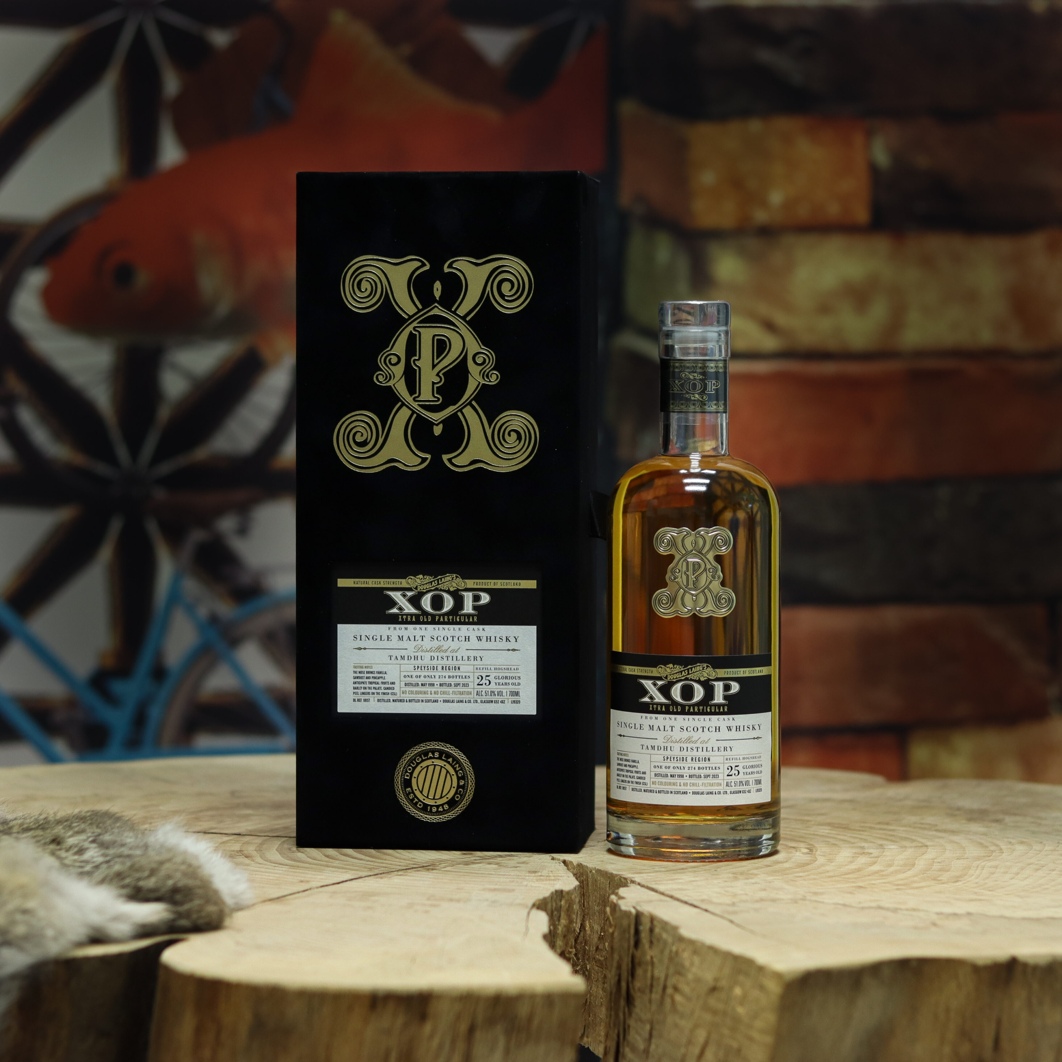 This exceptional single malt was drawn from a single refill hogshead cask, laid down in 1998 and matured for 25 full years. The refill sherry oak allowed the spirit’s natural Speyside elegance to shine while layering it with subtle notes of dried fruit, polished wood, and soft spice. Selected by Douglas Laing for their prestigious XOP range, this cask yielded only 274 bottles, each one a rare snapshot of patient, unhurried maturation.