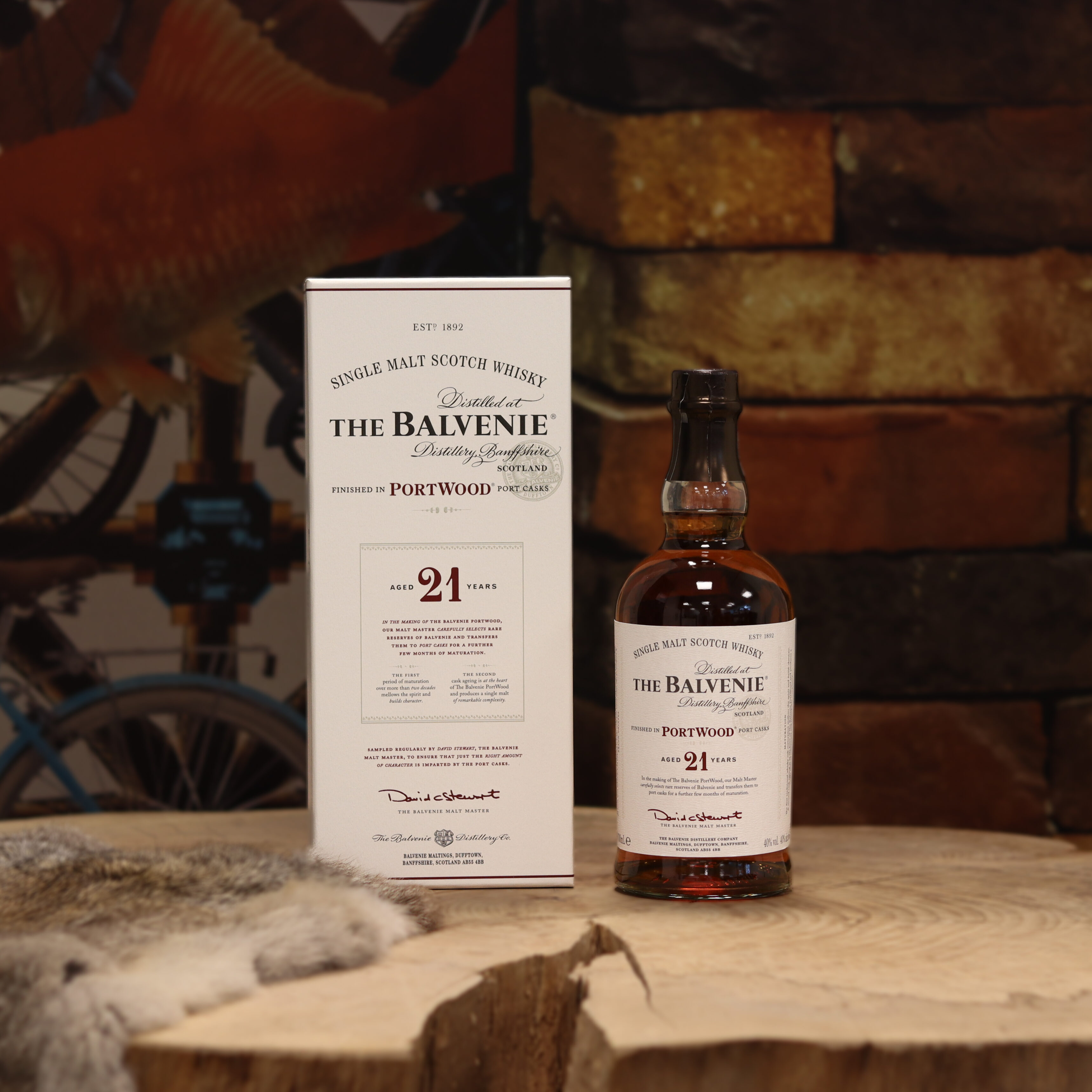 The Balvenie PortWood 21 Year Old offers a rich, elegant profile with layers of dried fruit, subtle spice, and a graceful influence from port cask finishing.